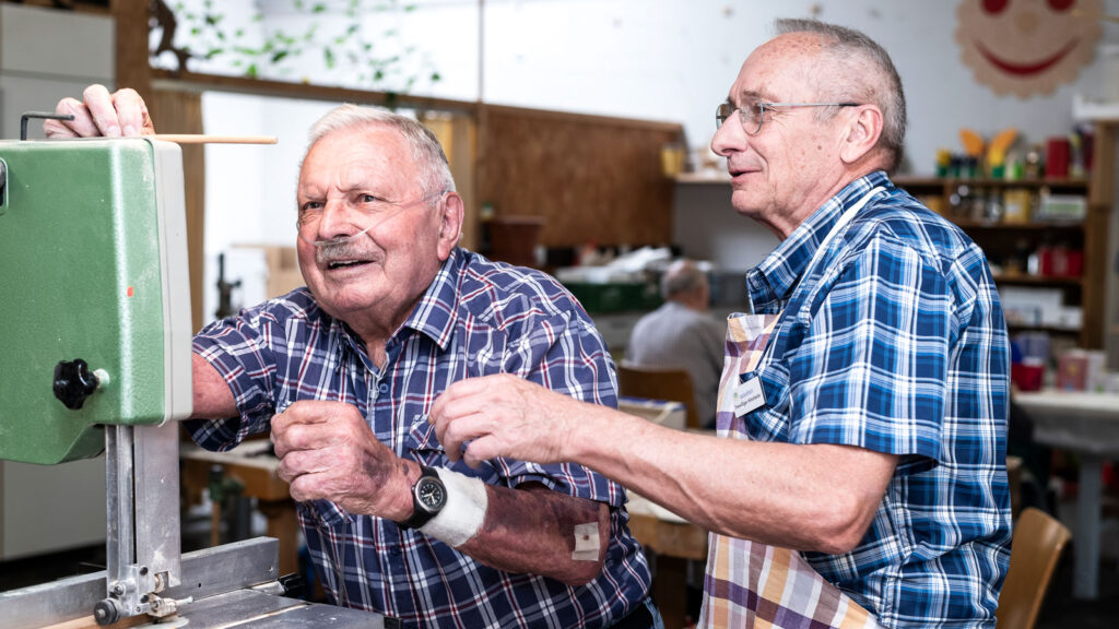 Wir betreuen Menschen mit einer gerontopsychiatrischen Erkrankung in einer eigenen Wohngruppe. Entgegen einem Altersheim ist es hier möglich, ungewöhnliches Verhalten zuzulassen und individuell bei der Tagesgestaltung darauf einzugehen. Das weitläufige Areal und die Angebotsvielfalt bieten optimale Voraussetzungen, um soziale Kontakte zu knüpfen und in einem sicheren Rahmen an Aktivitäten teilzunehmen.